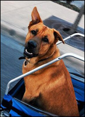 I emailed the owners, Russell and Dalea, and asked if they would send me some photos of Argos. What a happy dog huh? They wrote lovingly of him - he was part of their family. he went places with them, he rode in a cart behind their bikes. many of us with pets know this feeling well. part of the family.